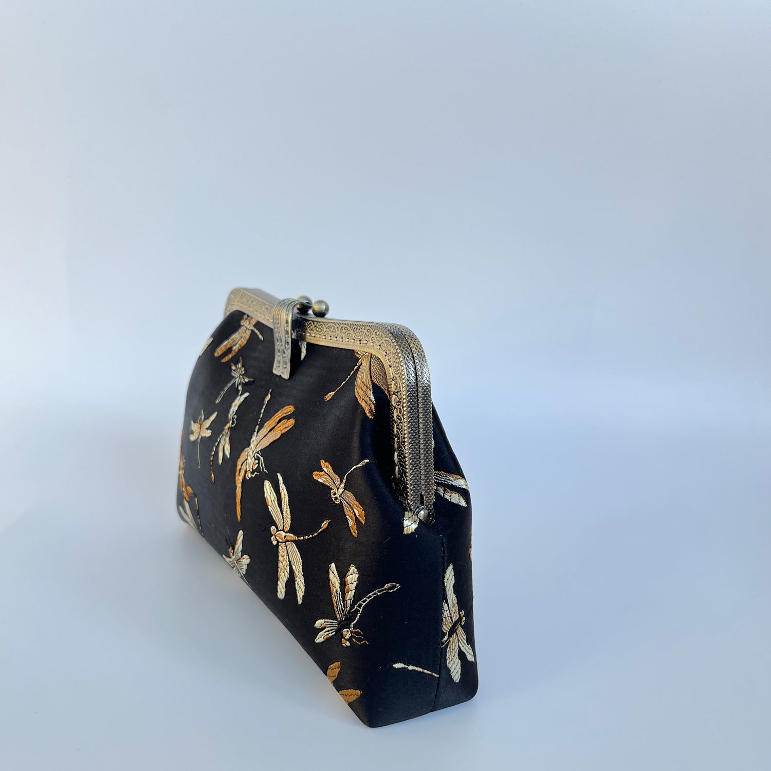 Torebka ze złotymi klasycznymi dodatkami. Jej uniwersalny charakter sprawia, że będzie idealnie pasować do większości stylizacji. Do sukienki wieczorowej i letniej, do kostiumu biurowego, do jeansów na co dzień – jedna torba, a tak wiele możliwości! Wszystkie nasze torby są szyte ręcznie i zdobione orientalnymi detalami. Są także, czymś więcej niż modnym dodatkiem, symbolizują styl życia i wartości odwzorowane w zdobiących je motywach. Torebki nie są przeznaczone do noszenia ciężkich rzeczy.