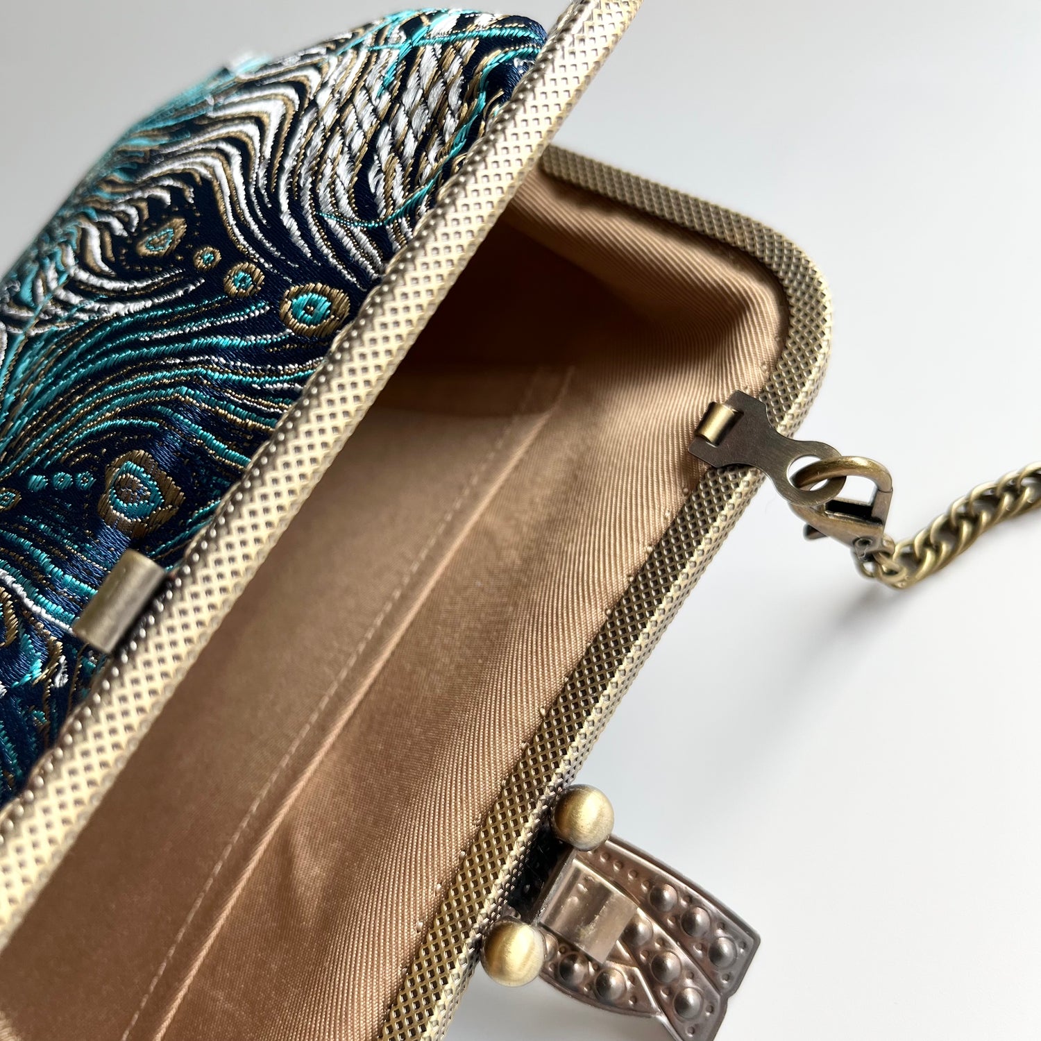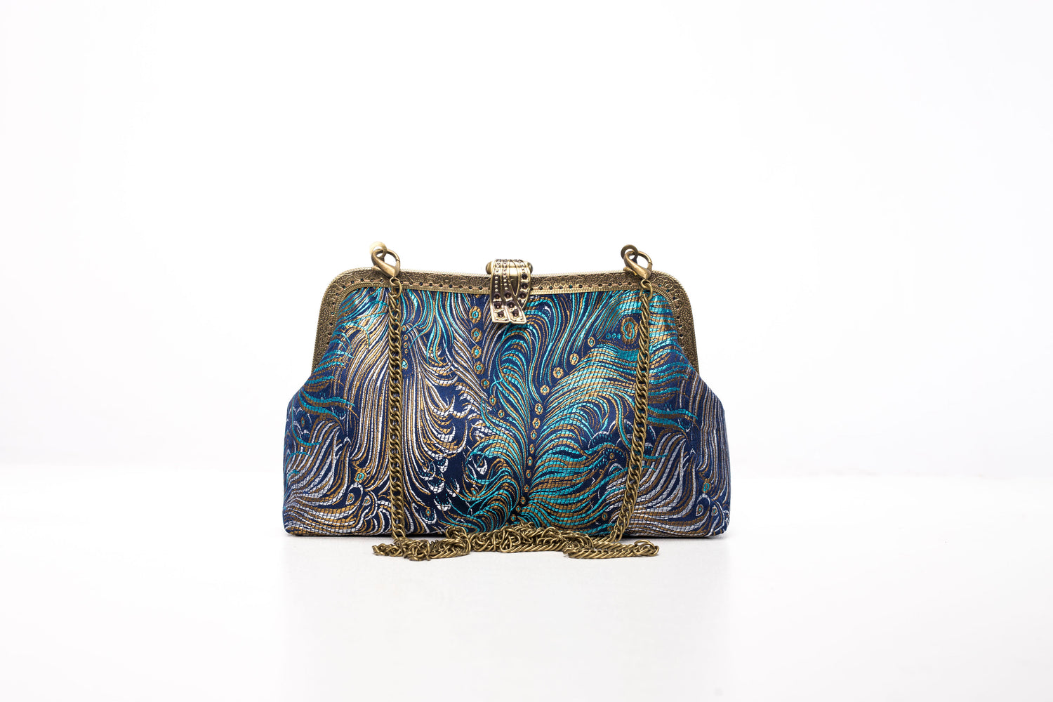 Torebka ze złotymi klasycznymi dodatkami. Jej uniwersalny charakter sprawia, że będzie idealnie pasować do większości stylizacji. Do sukienki wieczorowej i letniej, do kostiumu biurowego, do jeansów na co dzień – jedna torba, a tak wiele możliwości! Wszystkie nasze torby są szyte ręcznie i zdobione orientalnymi detalami. Są także, czymś więcej niż modnym dodatkiem, symbolizują styl życia i wartości odwzorowane w zdobiących je motywach. Torebki nie są przeznaczone do noszenia ciężkich rzeczy.