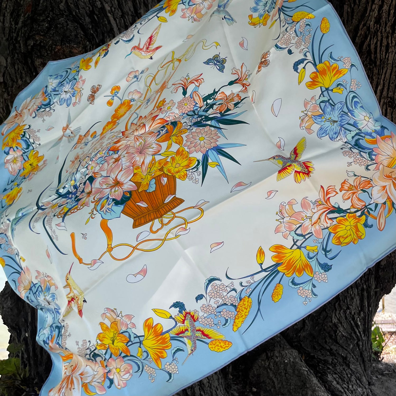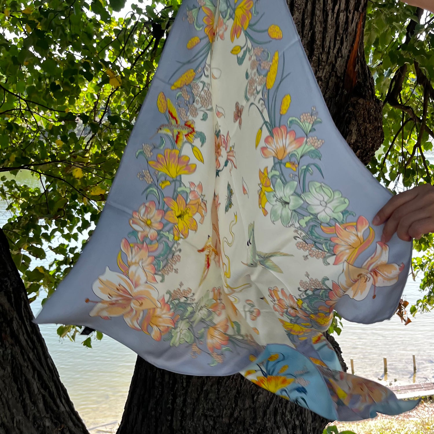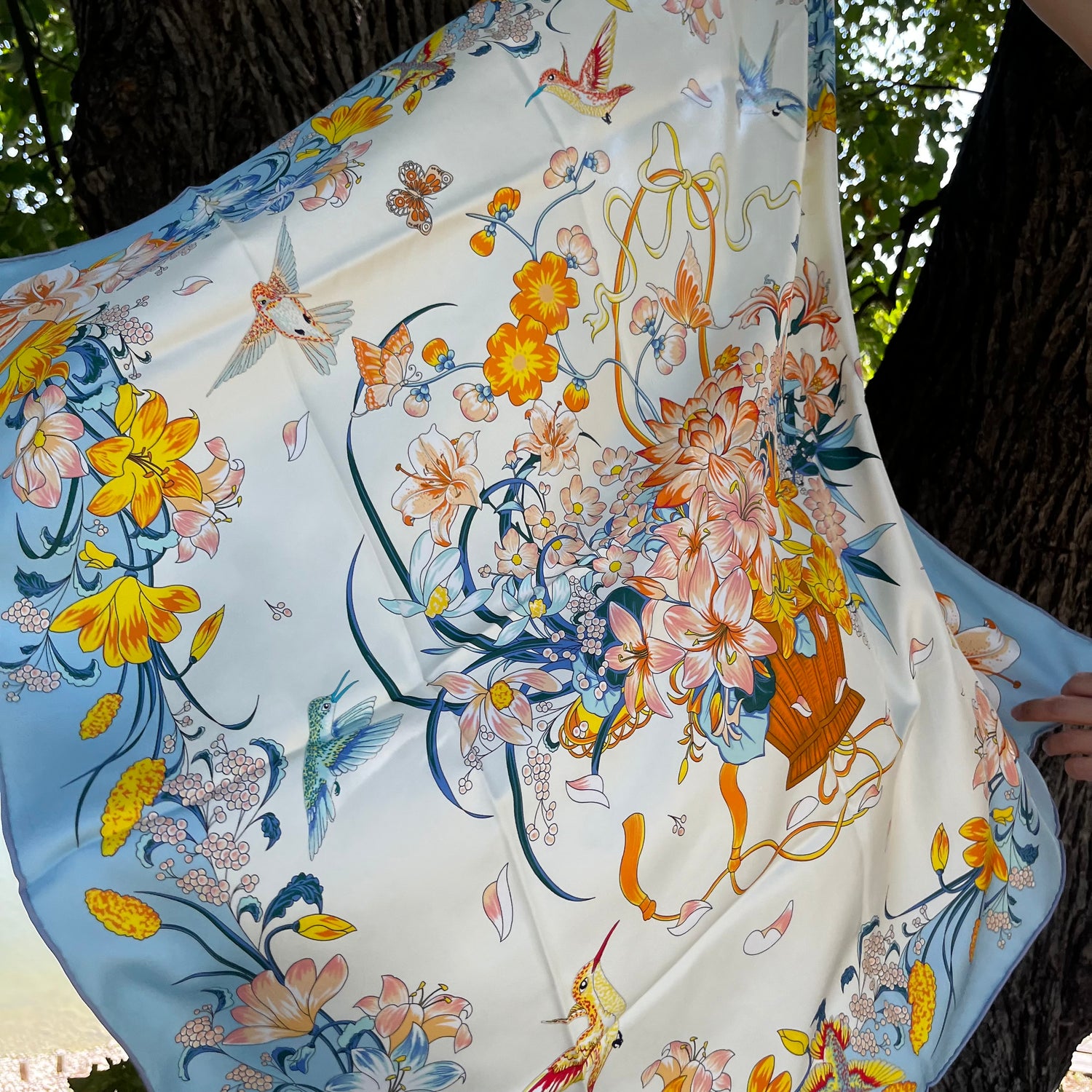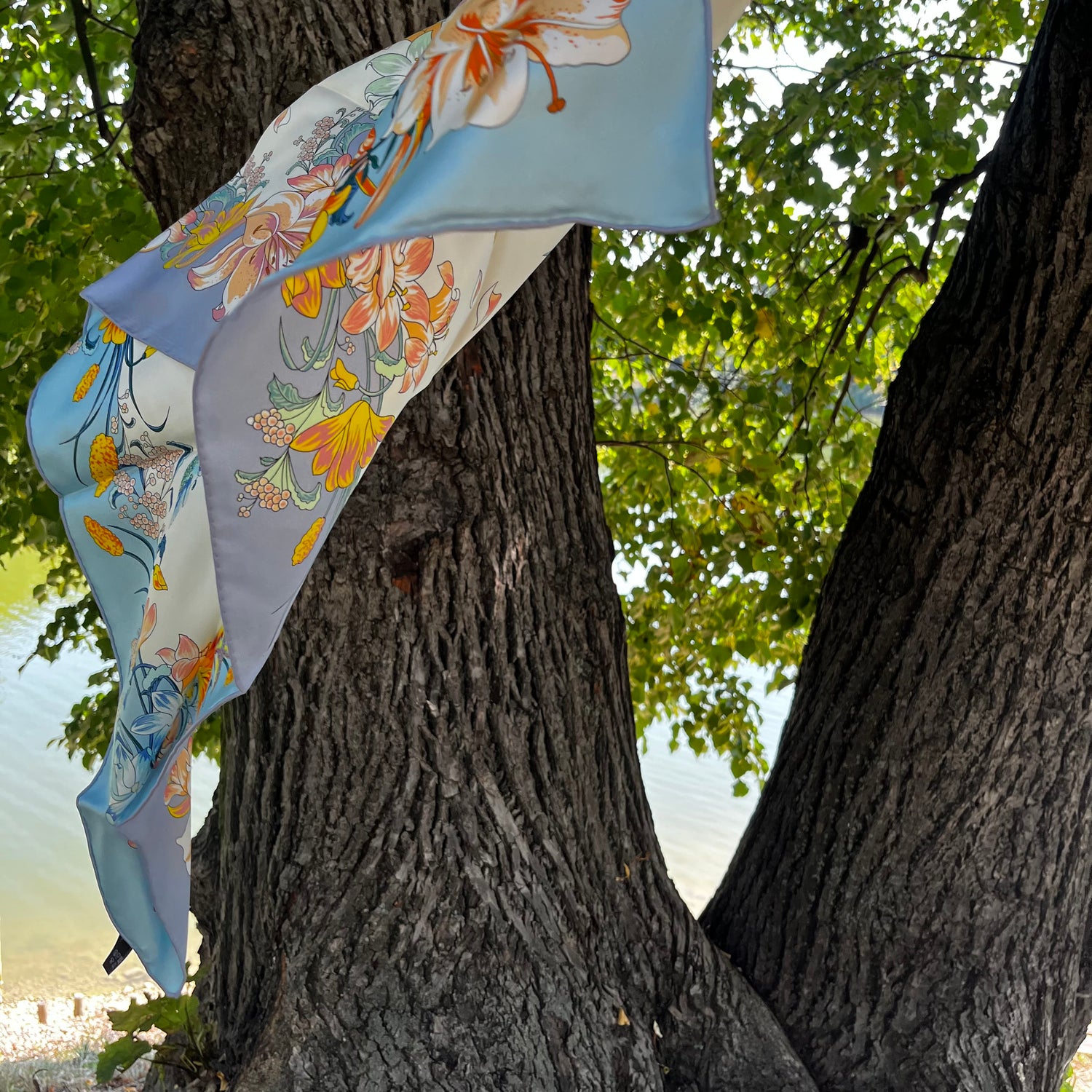 Może być używany jako szalik, opaska na głowę lub ozdobna torba. Może być używany przez cały rok.