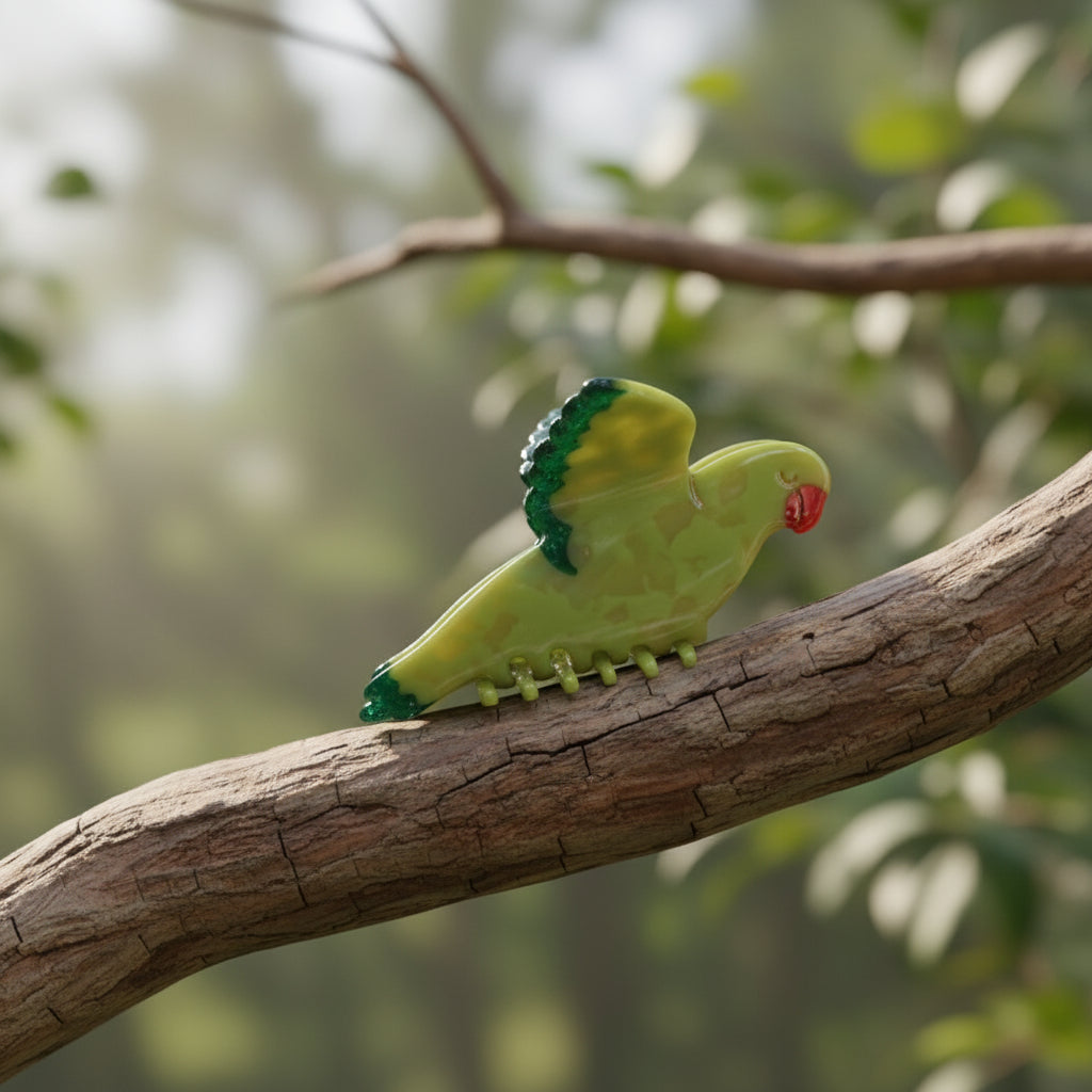 Klamra do włosów zielona papuga