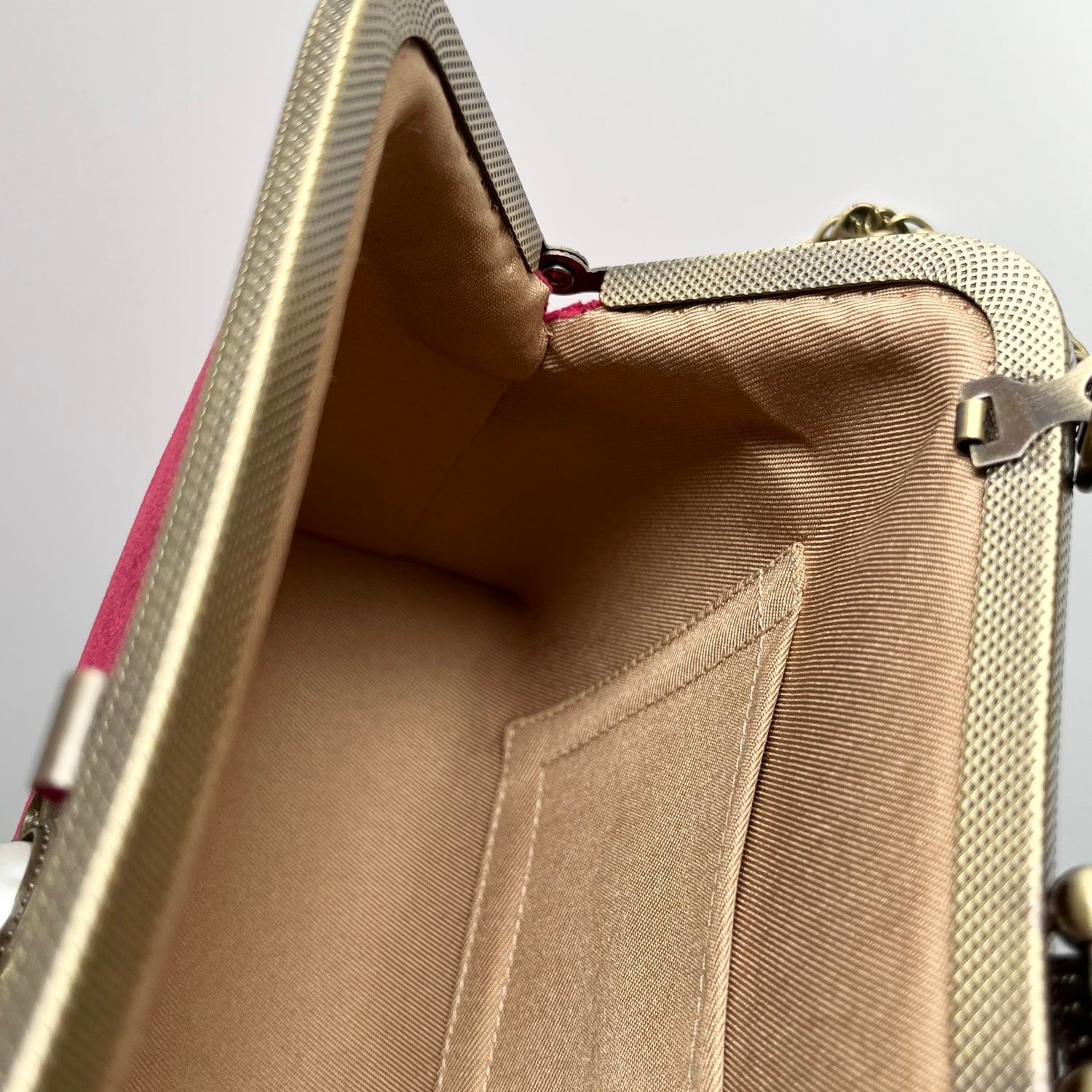 Torebka ze złotymi klasycznymi dodatkami. Jej uniwersalny charakter sprawia, że będzie idealnie pasować do większości stylizacji. Do sukienki wieczorowej i letniej, do kostiumu biurowego, do jeansów na co dzień – jedna torba, a tak wiele możliwości! Wszystkie nasze torby są szyte ręcznie i zdobione orientalnymi detalami. Są także, czymś więcej niż modnym dodatkiem, symbolizują styl życia i wartości odwzorowane w zdobiących je motywach. Torebki nie są przeznaczone do noszenia ciężkich rzeczy.