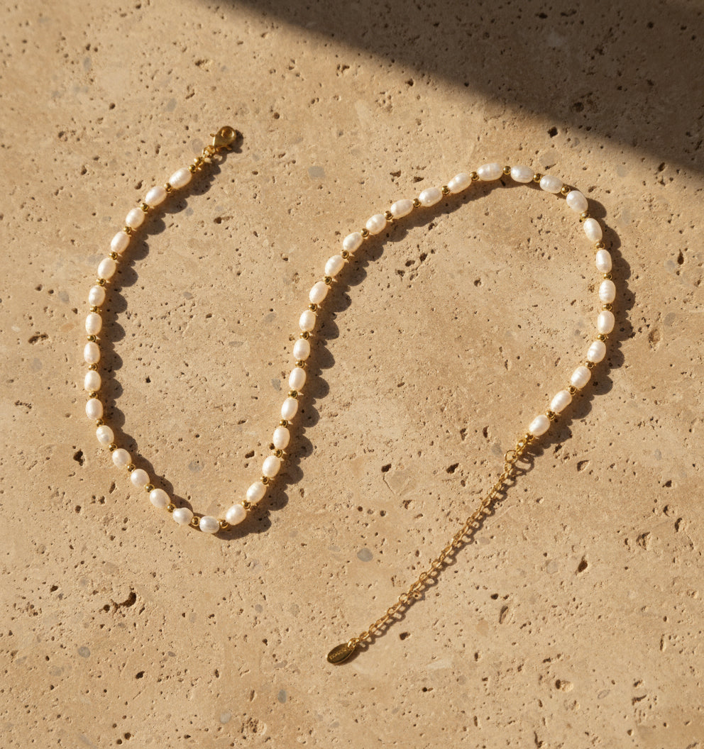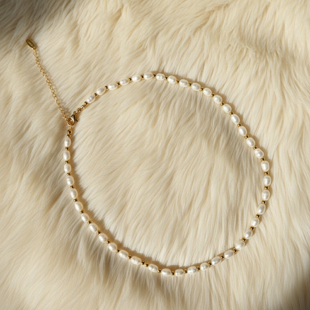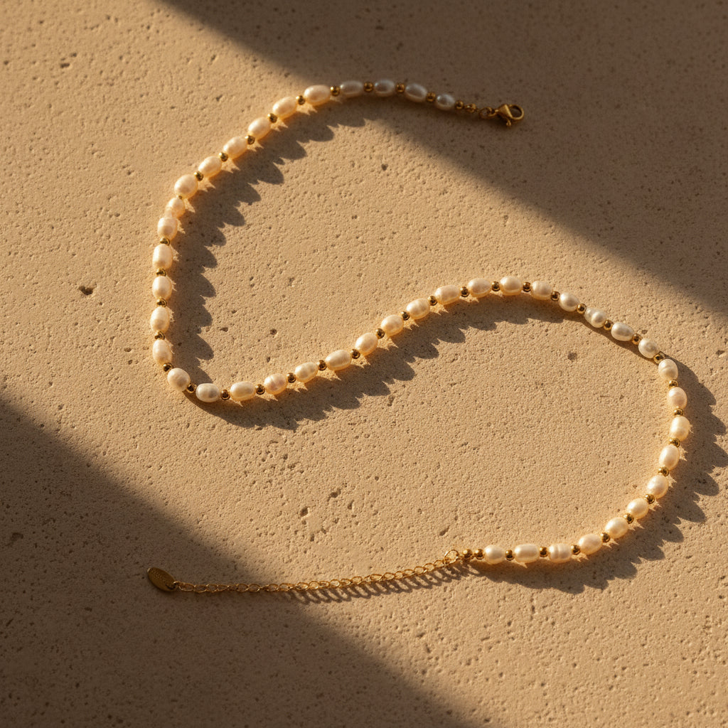 Materiał: stal chirurgiczna pozłacana 18k złotem i perły słodkowodne naturalne, każda sztuka jest inna