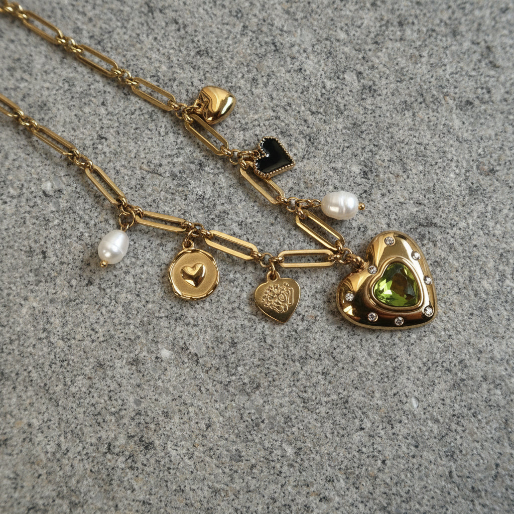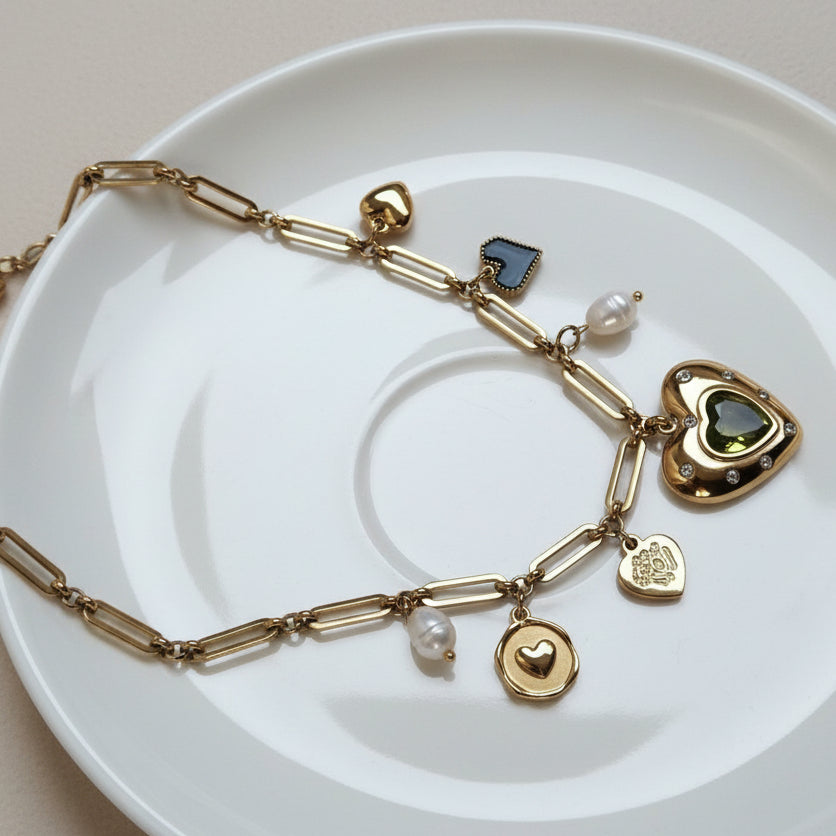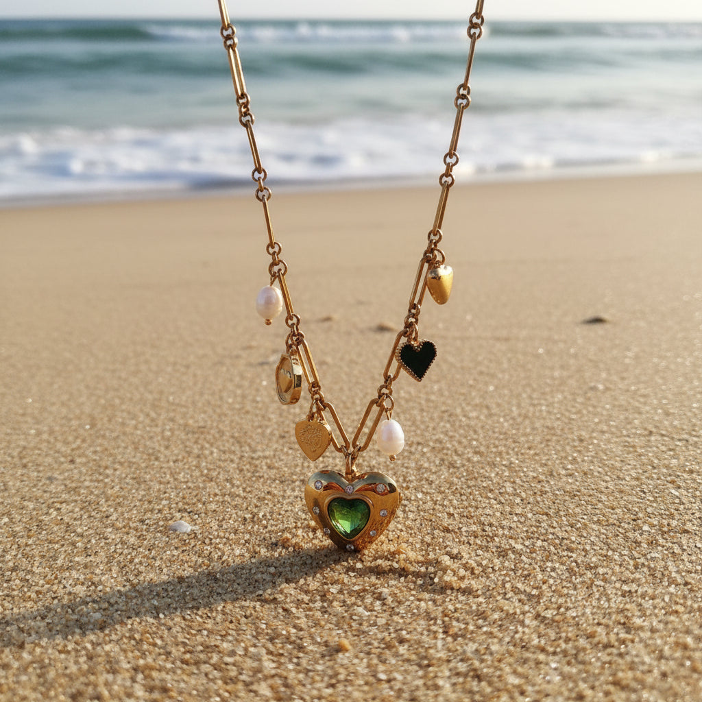 perły słodkowodne, cyrkonia, szkła i emalia, stal chirurgiczna pozłacana 18k złotem