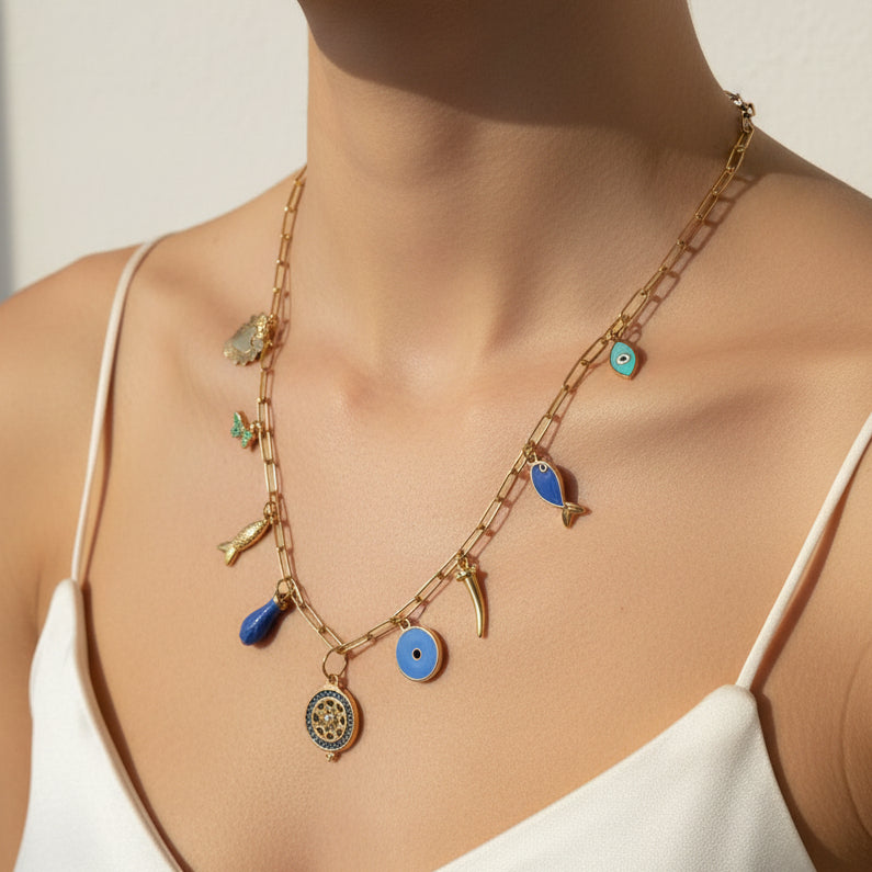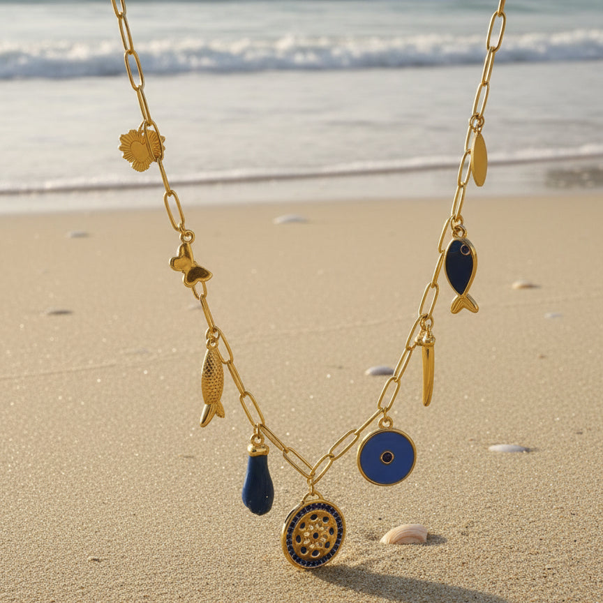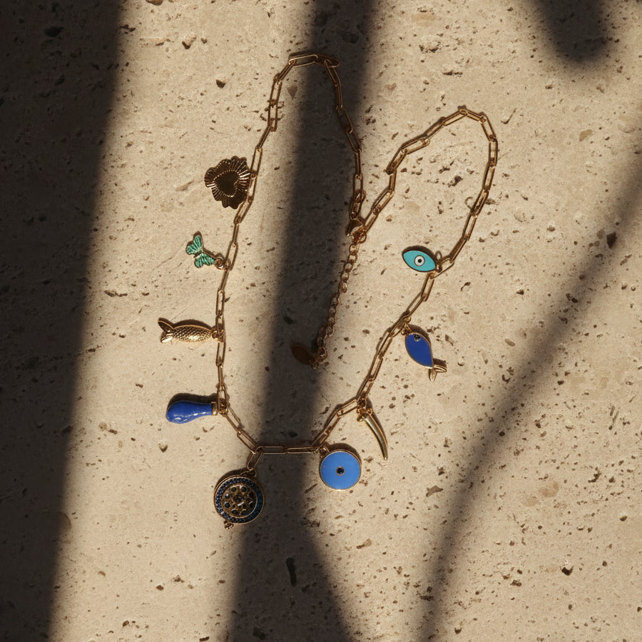 Materiał: stal chirurgiczna pozłacana 18k złotem, cyrkonia i emalia